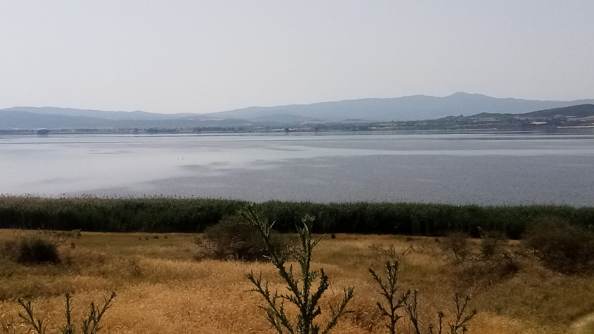 Immediately after leaving the hostel I get lost in the big city. I find the way but miss it again after having a coffee, and still again after the 437-meter ascent ends near Seih Sou. Then everything goes smoothly. I just need to cross the entire Chalkidiki peninsula eastwards. The highway runs north of two lakes, Langadas and Volvi. The sun is strong now and there are few trees until the end of the road before arriving in Stavros (where there is a beautiful forest).